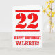 Cette carte de voeux amusante à thème d'anniversaire comporte un grand numéro rouge "22" ayant une apparence inspirée par un tampon, ainsi que le message de voeux d'anniversaire "HAPPY BANTHDAY", et un nom personnalisable sur le devant. L'intérieur a un message de voeux d'anniversaire modifiable, ou peut-être peut-être être effacé et laissé vide si un message doit être écrit à la main à la place. Une carte de voeux d'anniversaire personnalisée et amusante comme celle-ci pourrait être une façon amusante de faire des voeux d'anniversaire à quelqu'un qui célèbre son vingt-deuxième anniversaire. [~Z0000524]