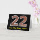 Le devant de cette carte de voeux d'anniversaire comporte un grand numéro "22" avec un motif de mur en brique rouge brunâtre, ainsi que le message "Joyeux 22e anniversaire", et un nom modifiable. L'intérieur comporte un message de voeux d'anniversaire personnalisé, ou peut-être pourrait-il être effacé et laissé vide si un message doit être écrit à la main à la place. Une carte d'anniversaire personnalisée comme celle-ci pourrait être une façon amusante d'envoyer des voeux d'anniversaire à quelqu'un qui célèbre son vingt-deuxième anniversaire. [~Z0000399]