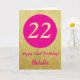 22e Bonne Carte de Parties scintillant d'Anniversaire Hot Rose et Gold avec nom personnalisé. Pour plus de personnalisation, cliquez sur le bouton "Customiser" et utilisez notre outil de conception pour modifier ce modèle.