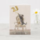 Chat de tabby gris avec ballons de feuille d'or sur une chaise à l'ancienne pour 23ème anniversaire. Le texte intérieur est modifiable.