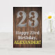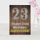 Ce look de pays et American Old West look design de carte de voeux thème d'anniversaire avec un grand look rustique numéro "23", le message "Happy 23ème anniversaire,", un nom modifiable, et un faux/imitation grain de bois inspiré look arrière - plan. L'intérieur a un message de voeux d'anniversaire modifiable, ou peut-être peut-être être effacé et laissé vide si un message doit être écrit à la main à la place. Une carte de voeux d'anniversaire personnalisable comme celle-ci pourrait être une façon amusante de livrer un message d'anniversaire à quelqu'un qui célèbre son vingt-troisième anniversaire. [~Z0000469]