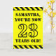 Le devant de cette carte de voeux amusante et audacieuse à thème d’anniversaire comporte un nom personnalisé et le message "VOUS AVEZ MAINTENANT 23 ANS!" en texte de pochoir noir sur un arrière - plan de couleur jaune. L'avant est également orné d'un motif rayé noir et jaune accrocheur aux bords supérieur et inférieur. L'intérieur comporte un message de voeux d'anniversaire customisé, ou peut-être pourrait-il être effacé et laissé vide si un message doit être écrit à la main à la place. Une carte d'anniversaire personnalisée comme celle-ci pourrait être une façon amusante d'envoyer des voeux d'anniversaire à quelqu'un qui célèbre son vingt-troisième anniversaire. [~Z0000413]