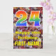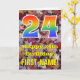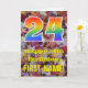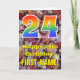 Le recto de ce modèle de carte d'anniversaire coloré, sur le thème de l'automne et inspiré de la nature, présente un grand nombre "24" avec un motif inspiré d'un dégradé de spectre arc-en-ciel, ainsi que le message "Joyeux 24e anniversaire" et un nom personnalisé. Le fond du recto de la carte présente un motif rustique de feuilles d'automne tombées. L'intérieur comporte un message de vœu d'anniversaire personnalisé, ou pourrait éventuellement être effacé et laissé vide si un message doit être écrit à la main à la place. Une carte d'anniversaire personnalisable comme celle-ci pourrait être un moyen amusant d'envoyer des vœux d'anniversaire à quelqu'un qui célèbre son vingt-quatrième anniversaire. [~Z0000384]