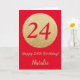 Happy 24th Birthday Red and Gold Glitter Card with personalized name. For further customization, please click the "Customize it" button and use our design tool to modify this template.