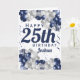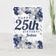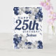 Une magnifique carte marine et ballon d'argent heureux 25ème anniversaire. Ce design fabuleux est la façon parfaite de souhaiter à quelqu'un un heureux vingt-cinquième anniversaire (ou n'importe quel âge!) Personnalisez avec notre propre nom et message personnalisés. Typographie de couleur bleue et somptueux ballons bleu marine et argent.