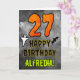 La façade de cette carte de voeux d’anniversaire Hallowe’en éffrayante et effrayante comporte un grand numéro "27". Il comporte également le message "HAPPY BANTHDAY", et un nom personnalisé. Il y a aussi des représentations d'un fantôme et d'une chauve-souris sur le devant. L'intérieur comporte un message de voeux d'anniversaire personnalisé, ou peut-être pourrait-il être effacé et laissé vide si un message doit être écrit à la main à la place. Une carte d’anniversaire personnalisée comme celle-ci pourrait être une façon amusante de reconnaître le vingt-septième anniversaire de quelqu’un qui tombe aussi sur Halloween (31 octobre). [~Z0000547]