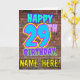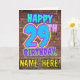 Le recto de cette carte de voeux d'anniversaire amusante comporte le message "HAPPY 29TH BANTHDAY", avec un style coloré, animé, urbain, et inspiré du graffiti, ainsi qu'un nom de destinataire personnalisé. L'arrière - plan de l'avant est décoré d'un motif d'inspiration mural en brique. L'intérieur a un message de voeux d'anniversaire personnalisé, ou peut-être peut-être être effacé et laissé vide si un message doit être écrit à la main à la place. Une carte de voeux amusante et personnalisable comme celle-ci pourrait être envoyée pour célébrer le vingt-neuvième anniversaire de quelqu’un. [~Z0000531]