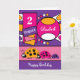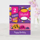 Personnalisez cette carte d'anniversaire pour un petit garçon. 2 ans Conçu en violet, rose, orange, blanc avec une jolie famille de coccinelle. Ajoutez un nom et un âge Joyeux anniversaire Souhaitez-vous un anniversaire spécial.