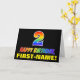 L'avant de cette carte de voeux colorée, joyeuse et amusante sur le thème de l'anniversaire comporte un grand nombre de "2" et le message "HAPPY BANTHDAY", tous deux avec un dégradé de arc-en-ciel coloré inspiré de couleur motif, ainsi qu'un nom de destinataire personnalisable jaune gras. L'avant a aussi un arrière - plan noir clair. L'intérieur a un message de voeux d'anniversaire personnalisé, ou peut-être peut-être être effacé et laissé vide si un message doit être écrit à la main à la place. Une carte d’anniversaire personnalisée comme celle-ci pourrait être une façon amusante de célébrer le deuxième anniversaire de quelqu’un. [~Z0000472]