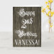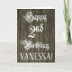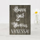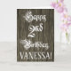 L'avant de cette somptueuse et luxueuse carte de voeux d'anniversaire comporte le message "Happy 2nd Birthday", en texte de script élaboré. L'avant est également orné d'un nom de destinataire personnalisé et d'un arrière - plan motif à l'allure imitation bois. L'intérieur a un message d'anniversaire personnalisé, ou peut-être peut-être être effacé et laissé vide si un message doit être écrit à la main à la place. Une carte de voeux d’anniversaire ornée et personnalisable comme celle-ci pourrait être envoyée pour célébrer le deuxième anniversaire de quelqu’un. [~Z0000556]