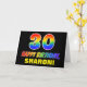 La façade de cette carte de voeux d'anniversaire amusante, colorée et joyeuse comporte un grand nombre de "30" et le message "HAPPY BANTHDAY", tous deux ayant un dégradé arc-en-ciel inspiré colorant motif, ainsi qu'un nom de destinataire personnalisé jaune gras. L'avant est également orné d'un arrière - plan sobre, minimaliste et noir. L'intérieur comporte un message de voeux d'anniversaire personnalisé, ou peut-être pourrait-il être effacé et laissé vide si un message doit être écrit à la main à la place. Une carte d’anniversaire personnalisable comme celle-ci pourrait être une façon amusante d’envoyer un message célébrant le trentième anniversaire de quelqu’un. [~Z0000472]