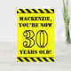 Le recto de cette carte de voeux d’anniversaire, qui attire l’attention et qui est audacieuse, comporte un nom personnalisé et le message "VOUS AVEZ MAINTENANT 30 ANS !" en texte de style pochoir noir sur un arrière - plan de couleur jaune. Il y a aussi un motif rayé noir et jaune accrocheur aux bords supérieur et inférieur de l'avant. L'intérieur comporte un message de voeux d'anniversaire personnalisable, ou peut-être pourrait-il être effacé et laissé vide si un message doit être écrit à la main à la place. Une carte d’anniversaire personnalisable comme celle-ci pourrait être une façon amusante d’envoyer un message pour célébrer le trentième anniversaire de quelqu’un. [~Z0000413]