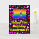 L'avant de cette carte de voeux amusante et colorée sur le thème de l'anniversaire comprend un grand nombre de "31" ayant un motif inspiré par un gradient de spectre arc-en-ciel. Il comporte également le message "Joyeux 31e anniversaire", et un nom personnalisé. L'arrière - plan de l'avant présente un motif de formes cardiaques rouges, roses et violettes de différentes tailles. L'intérieur a un message d'anniversaire personnalisé, ou peut-être peut-être être effacé et laissé vide si un message doit être écrit à la main à la place. Une carte de voeux d'anniversaire joyeuse et personnalisable comme celle-ci pourrait être un moyen amusant de livrer un message de voeux d'anniversaire à quelqu'un qui célèbre son trente et unième anniversaire. [~Z0000551]