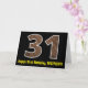 La façade de cette carte de voeux amusante et rustique d'anniversaire avec un grand numéro "31" avec un motif d'apparence imitation bois, avec le message "Happy 31st Birthday," et un nom personnalisé. L'intérieur comporte un message de voeux d'anniversaire modifiable, ou peut-être pourrait-il être effacé et laissé vide si un message doit être écrit à la main à la place. Une carte d’anniversaire personnalisée comme celle-ci peut être une façon amusante d’envoyer un message pour célébrer le trente et unième anniversaire de quelqu’un. [~Z0000431]