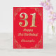 Carte 31e anniversaire Parties scintillant rouge et or