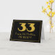 Cette conception de carte de voeux d'anniversaire inspirée et vintage de l'époque des Années folles comporte un grand aspect art déco inspiré du numéro "33", le message "Happy 33rd Birthday", un nom personnalisable, et un motif de bordure composé de lignes fines sur le devant. L'arrière - plan du devant est noir de couleur. L'intérieur a un message de voeux d'anniversaire personnalisable, ou peut-être peut-être être effacé et laissé vide si un message doit être écrit à la main à la place. Une carte de voeux d'anniversaire customisée comme celle-ci pourrait être une façon amusante de transmettre un message d'anniversaire à quelqu'un qui célèbre son trente-troisième anniversaire. [~Z0000498]