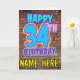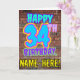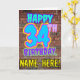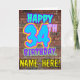 Le recto de cette carte de voeux d'anniversaire amusante comporte le message "HAPPY 34TH BANTHDAY", avec un style coloré, dynamique, urbain, de street art et de graffiti inspiré, ainsi qu'un nom de destinataire modifiable. L'arrière - plan de l'avant est décoré d'un motif d'inspiration mural en brique. L'intérieur a un message de voeux d'anniversaire modifiable, ou peut-être peut-être être effacé et laissé vide si un message doit être écrit à la main à la place. Une carte de voeux amusante et personnalisable comme celle-ci pourrait être utilisée pour célébrer le trente-quatrième anniversaire de quelqu’un. [~Z0000531]