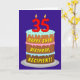 Cette carte de voeux d'anniversaire joyeuse et amusante présente une représentation d'un gâteau d'anniversaire à trois niveaux avec des bougies en forme de numéro sur le dessus montrant l'âge "35", avec le message "HAPPY 35TH BANTHDAY," et un nom de destinataire modifiable. L'intérieur a un message de voeux d'anniversaire modifiable, ou peut-être peut-être être effacé et laissé vide si un message doit être écrit à la main à la place. Une carte de voeux d'anniversaire joyeuse et customisée comme celle-ci pourrait être une façon amusante d'envoyer un message de voeux d'anniversaire à quelqu'un qui célèbre son trente-cinquième anniversaire. [~Z0000620]