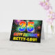 La façade de cette carte de voeux joyeuse, amusante et colorée à thème d'anniversaire comporte un grand nombre de "35" et le message "HAPPY BANTHDAY", tous deux avec un dégradé de arc-en-ciel inspiré coloré motif, ainsi qu'un nom de destinataire personnalisé jaune gras. Le devant est également orné d'un motif arrière - plan multicolore inspiré par les feux d'artifice de la fête. L'intérieur comporte un message de voeux d'anniversaire personnalisable, ou peut-être pourrait-il être effacé et laissé vide si un message doit être écrit à la main à la place. Une carte d’anniversaire personnalisée colorée comme celle-ci pourrait être une façon amusante de reconnaître le trente-cinquième anniversaire de quelqu’un. [~Z0000471]