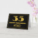 L'avant de ce style des années 1920-1930 inspiré, aspect vintage conception de carte de voeux d'anniversaire comprend un grand look art déco inspiré numéro "35", le message "HAPPY BANTHDAY", un nom modifiable, et un motif de frontière composé de lignes. Il y a un arrière - plan noir sur le devant. L'intérieur comporte un message d'anniversaire personnalisé, ou pourrait être effacé et laissé vide si un message doit être écrit à la main à la place. Une carte d'anniversaire personnalisée comme celle-ci pourrait être une façon amusante d'envoyer des voeux d'anniversaire à quelqu'un qui célèbre son trente-cinquième anniversaire. [~Z0000506]