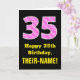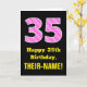 Cette carte de voeux amusante et joyeuse à thème d'anniversaire design dispose d'un grand numéro "35" avec un motif rayé contenant des formes cardiaques coloré rose clair et rose foncé sur le devant. Le recto contient également le message de voeux d'anniversaire "Joyeux 35e anniversaire", ainsi qu'un nom de destinataire personnalisé. L'intérieur comporte un message de voeux d'anniversaire modifiable, ou peut-être pourrait-il être effacé et laissé vide si un message doit être écrit à la main à la place. Une carte d’anniversaire personnalisée comme celle-ci pourrait être une façon amusante de souligner le trente-cinquième anniversaire de quelqu’un. Cela pourrait aussi être un choix amusant pour quelqu'un qui a un anniversaire qui tombe le 14 février (Saint-Valentin), en raison de ses symboles et couleurs de coeur aimés. [~Z0000434]