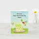 Mark a special 35th birthday with this charming hand-painted watercolor St. Patrick’s Day birthday card, filled with festive Irish symbolism and joyful detail. A vanilla birthday cake adorned with green and white shamrocks and carnations glows beneath sparkling candles, creating a warm and celebratory centerpiece. Overhead, a European robin carries a small green balloon — a cherished Irish symbol of renewal, hope, and good fortune — while a playful red-eyed tree frog peeks from behind the cake, representing luck and vibrant new beginnings. A delicate dragonfly carrying a shamrock completes the scene, symbolizing light, positivity, and meaningful change.