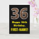 Carte 36e anniversaire : Nom, Motif Faux Wood Grain "36"