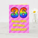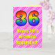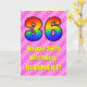 L'avant de cette carte de voeux amusante et joyeuse à thème de 36ème anniversaire comprend un grand numéro "36" avec un motif coloré inspiré par l'aspect d'un arc-en-ciel spectre. Il comporte également le message "Joyeux 36e anniversaire", et un nom de destinataire modifiable. L'arrière - plan de l'avant présente un joyeux motif de rayures rose pâle et rose foncé contenant des coeurs roses aimés. L'intérieur comporte un message de voeux d'anniversaire personnalisable, ou peut-être pourrait-il être effacé et laissé vide si un message doit être écrit à la main à la place. Une carte d'anniversaire personnalisée comme celle-ci pourrait être une façon amusante d'envoyer des voeux d'anniversaire à quelqu'un qui célèbre son trente-sixième anniversaire. [~Z0000416]