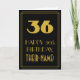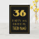Cette carte de vœux d'anniversaire au style des années 1920/1930 inspiré et au style vintage/retro présente un grand numéro « 36 » d'apparence art déco, le message « Joyeux 36e anniversaire », un nom personnalisé et un motif de bordure composé de fines lignes sur le devant. Le fond de la face avant est de couleur noire. L'intérieur comporte un message de vœux d'anniversaire modifiable, ou pourrait éventuellement être vidé et laissé vierge si un message doit être écrit à la main à la place. Une carte de vœux d'anniversaire personnalisable comme celle-ci pourrait être envoyée pour célébrer le trente-sixième anniversaire de quelqu'un.