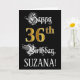 La façade de cette carte de voeux d'anniversaire élaborée et opulente comprend le message "Joyeux 36e anniversaire", ainsi qu'un nom de destinataire personnalisé. Une partie du message est dans un texte élégant de style script. Le grand numéro "36th" présente un motif d'allure imitation or. L'arrière - plan est noir de couleur. L'intérieur a un message de voeux d'anniversaire modifiable, ou peut-être peut-être être effacé et laissé vide si un message doit être écrit à la main à la place. Une carte de voeux d'anniversaire ornée et customisée comme celle-ci pourrait être un moyen respectable d'envoyer un message de voeux d'anniversaire à quelqu'un qui célèbre son trente-sixième anniversaire. [~Z0000559]