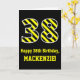 L'avant de ce design de carte anniversaire-orienté de salutation d'attention-saisie et d'amusement comporte un grand nombre "38", avec un motif noir et jaune de rayures. Il comporte également le message le "joyeux trente-huitième anniversaire,", et un nom personnalisable. L'arrière - plan de l'avant est coloré noir. Les caractéristiques intérieures un message editable de salutation d'anniversaire, ou pourraient peut-être être dégagées et sont parties du blanc si un message doit être écrit à la main à la place. Une carte d'anniversaire personnalisée comme ceci pourrait être une manière d'amusement d'envoyer des souhaits d'anniversaire à quelqu'un qui célèbre leur huitième anniversaire trente. [~Z0000382]