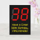 La façade de cette carte de voeux geeky et amusante à thème d'anniversaire comporte un grand numéro "38" avec une apparence de style d'affichage numérique à sept segments rouge, ainsi que le message "Avoir un grand 38e anniversaire", et un nom personnalisable, sur un arrière - plan de couleur noire. L'intérieur comporte un message de voeux d'anniversaire modifiable, ou peut-être pourrait-il être effacé et laissé vide si un message doit être écrit à la main à la place. Une carte d’anniversaire personnalisable comme celle-ci pourrait être une façon amusante de reconnaître le trente-huitième anniversaire de quelqu’un. [~Z0000386]