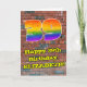 Ce dessin amusant et excitant urbain street art et graffiti sur le thème de la carte de voeux d'anniversaire dispose d'un grand nombre "39" avec un motif multicolore du spectre arc-en-ciel inspiré. Il comporte également le message "Joyeux 39e anniversaire", et un nom personnalisable. L'arrière - plan de l'avant dispose d'un motif mural en brique. L'intérieur comporte un message de voeux d'anniversaire modifiable, ou peut-être pourrait-il être effacé et laissé vide si un message doit être écrit à la main à la place. Une carte de voeux d'anniversaire colorée et personnalisée comme celle-ci pourrait être une façon amusante d'envoyer des voeux d'anniversaire à quelqu'un qui célèbre son trente-neuvième anniversaire. [~Z0000586]