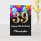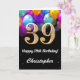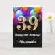 39e Anniversaire Ballons noirs et dorés Carte d'Anniversaire. Pour plus de personnalisation, cliquez sur le bouton "Customiser" et utilisez notre outil de conception pour modifier ce modèle.