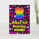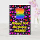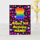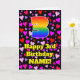 L'avant de cette carte de voeux joyeuse et joyeuse sur le thème de l'anniversaire comporte un grand numéro "3" avec un motif inspiré par un gradient de spectre arc-en-ciel, ainsi que le message "Joyeux 3e anniversaire", et un nom personnalisé. L'arrière - plan de l'avant présente un motif aux formes de coeur rose, violet et rouge. L'intérieur a un message de voeux d'anniversaire personnalisé, ou peut-être peut-être être effacé et laissé vide si un message doit être écrit à la main à la place. Une carte de voeux d’anniversaire joyeuse et customisée comme celle-ci pourrait être envoyée pour célébrer le troisième anniversaire de quelqu’un. [~Z0000551]