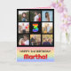 L'avant de cette carte de voeux joyeuse et joyeuse sur le thème de l'anniversaire comporte le numéro "3" avec un motif multicolore inspiré du spectre arc-en-ciel, ainsi que le message "HAPPY 3rd BIRTHDAY", et un nom de destinataire modifiable. Autour du numéro à motif arc-en-ciel sur le devant, il y a des photos qui peuvent être personnalisées, peut-être avec des photos du destinataire, de la famille et des amis du destinataire, ou de l’expéditeur de la carte. Il y a aussi un motif dégradé coloré à l'arc-en-ciel inspiré des arrière - plans derrière le message personnalisé. L'intérieur a un message d'anniversaire personnalisé, ou peut-être peut-être être effacé et laissé vide si un message doit être écrit à la main à la place. Une carte de voeux d’anniversaire joyeuse et customisée comme celle-ci pourrait être envoyée pour célébrer le troisième anniversaire de quelqu’un. (Photographie © Storytree Studios, Stanford, CA.) [~Z0000662]