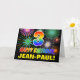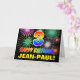 L'avant de cette carte de voeux joyeuse, colorée et amusante sur le thème de l'anniversaire comporte un grand nombre de "3" et le message "HAPPY BANTHDAY", tous deux dotés d'une couleur motif inspirée par un gradient de spectre arc-en-ciel, ainsi qu'un nom de destinataire personnalisable jaune gras. Le front a également un motif arrière - plan multicolore éclatant feux d'artifice inspiré par des . L'intérieur comporte un message de voeux d'anniversaire customisé, ou peut-être pourrait-il être effacé et laissé vide si un message doit être écrit à la main à la place. Une carte d’anniversaire personnalisée comme celle-ci pourrait être une façon amusante d’envoyer un message célébrant le troisième anniversaire de quelqu’un. [~Z0000471]