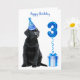 Envoyez des voeux spéciaux pour le 3e anniversaire à votre 3 ans préféré avec cette jolie carte d'anniversaire Black Labrador Puppy et bleu numéro 3 ballon - Voir les accessoires correspondants pour votre fête d'anniversaire. 3ème Anniversaire Chiot Thème - Joli Chien Bleu Garçon Pawty Carte Anniversaire.