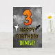 La façade de cette carte de voeux d’anniversaire à thème Hallowe’en, effrayante et éffrayante, comporte un grand nombre de "3". Il comporte également le message "HAPPY BANTHDAY," et un nom personnalisé. Il y a aussi des représentations d'une chauve-souris et d'un fantôme sur le devant. L'intérieur comporte un message d'anniversaire personnalisé, ou pourrait être effacé et laissé vide si un message doit être écrit à la main à la place. Une carte d’anniversaire personnalisable comme celle-ci pourrait être une façon amusante d’envoyer un message pour célébrer le troisième anniversaire de quelqu’un qui tombe aussi le 31 octobre (Halloween). [~Z0000547]