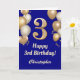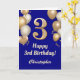 Carte 3e anniversaire Marine Bleu et Ballons d'or Confet
