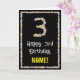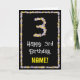 Carte 3e anniversaire : numéro de fleurs florales, nom p