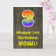 La façade de cette carte de voeux colorée mais rustique à thème d'anniversaire comporte un grand numéro "3" avec un motif inspiré par un gradient de spectre arc-en-ciel, ainsi que le message "Joyeux 3e anniversaire", et un nom de destinataire modifiable. L'arrière - plan de l'avant de la carte est orné d'un motif d'inspiration rustique en faux bois. L'intérieur comporte un message d'anniversaire personnalisé, ou pourrait être effacé et laissé vide si un message doit être écrit à la main à la place. Une carte d’anniversaire personnalisable comme celle-ci pourrait être une façon amusante de reconnaître le troisième anniversaire de quelqu’un. [~Z0000419]