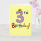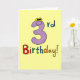 Pour un 3ème anniversaire, la couleur arrière - plan est personnalisable. Parfait pour une invitation à une fête d'anniversaire ou comme cadeau d'anniversaire. Vous pouvez facilement le personnaliser en appuyant sur le bouton "customiser".