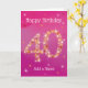Carte d'anniversaire 40e. 40 en Étoiles - Numéro d'âge - Carte d'anniversaire quarantième - Arrière - plan rose/violet - Texte personnalisable Carte rose/violet avec numéro d'étoile - le numéro "40" est créé avec étoiles jaunes, rouges et blanches Texte personnalisable : devant la carte : Joyeux anniversaire et ajoutez votre nom. Texte personnalisable : Carte intérieure : Wishing You a Very Happy 40th Birthday. Vous pouvez modifier ou supprimer le texte comme vous le souhaitez, en cliquant sur "Personnaliser ce modèle". Plus de couleurs et d'autres âges sont disponibles. Si vous avez des besoins spécifiques, veuillez me contacter.