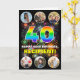 La façade de cette carte de voeux optimiste et passionnante d'anniversaire comporte le numéro "40" avec un motif dynamique du spectre arc-en-ciel inspiré, avec le message "HAPPY 40th BIRTHDAY," et un nom modifiable, sur un motif multicolore éclatant feux d'artifice inspiré. En haut et en bas de l’avant se trouvent des images qui peuvent être customisées, peut-être avec des photos de la famille et des amis du bénéficiaire. L'intérieur comporte un message d'anniversaire personnalisé, ou pourrait être effacé et laissé vide si un message doit être écrit à la main à la place. Une carte de voeux d'anniversaire amusante et modifiable comme celle-ci pourrait être une façon amusante de transmettre un message d'anniversaire à quelqu'un qui célèbre son quarantième anniversaire. (Photographie © Storytree Studios, Stanford, CA.) [~Z0000660]