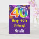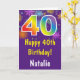 40e Anniversaire Colorful Rainbow Fireworks Purple Card avec nom personnalisé. Pour plus de personnalisation, cliquez sur le bouton "Customiser" et utilisez notre outil de conception pour modifier ce modèle.