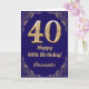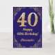 40e anniversaire Marine Blue and Gold Parties scintillant Frame. Pour plus de personnalisation, cliquez sur le bouton "Customiser" et utilisez notre outil de conception pour modifier ce modèle.