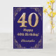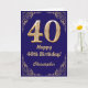 Carte 40e anniversaire Marine Parties scintillant bleu e