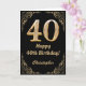 Carte 40e anniversaire Parties scintillant noir et or ca