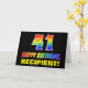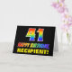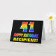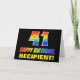 La façade de cette carte de voeux d'anniversaire colorée, amusante et joyeuse comporte un grand numéro "41" et le message "HAPPY BANTHDAY", tous deux ayant un dégradé arc-en-ciel inspiré colorant motif, ainsi qu'un nom de destinataire personnalisé jaune gras. L'avant est également orné d'un arrière - plan minimaliste, simple et noir. L'intérieur a un message de voeux d'anniversaire personnalisé, ou peut-être peut-être être effacé et laissé vide si un message doit être écrit à la main à la place. Une carte d’anniversaire personnalisable comme celle-ci pourrait être une façon amusante d’envoyer un message célébrant le quarante et unième anniversaire de quelqu’un. [~Z0000472]